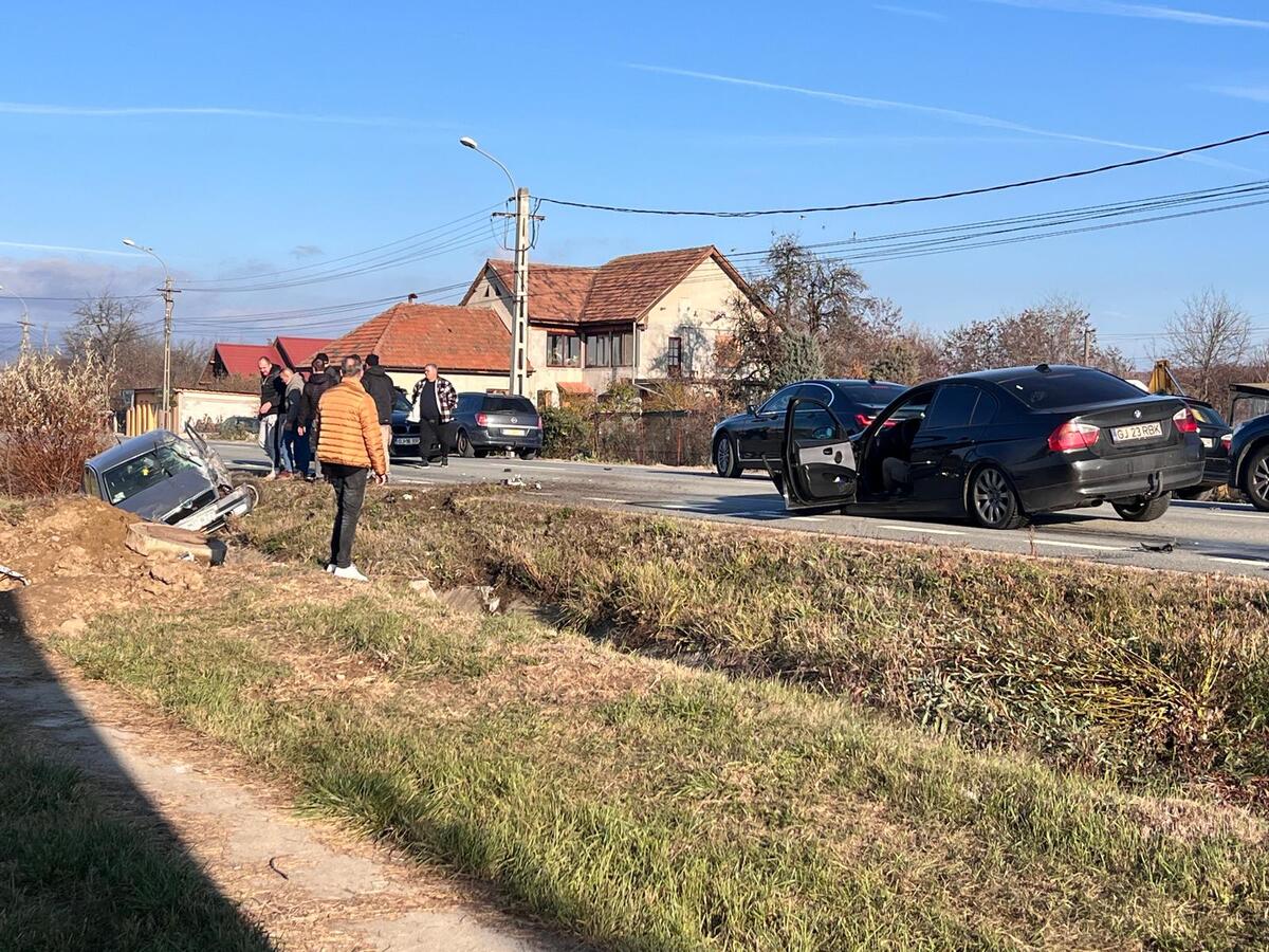 Un accident rutier a avut vineri după amiaza, la ieșire din municipiul Târgu Jiu, în zona Iezureni. Cele două mașini implicate s-au ales cu avarii serioase, iar un bărbat a fost rănit.