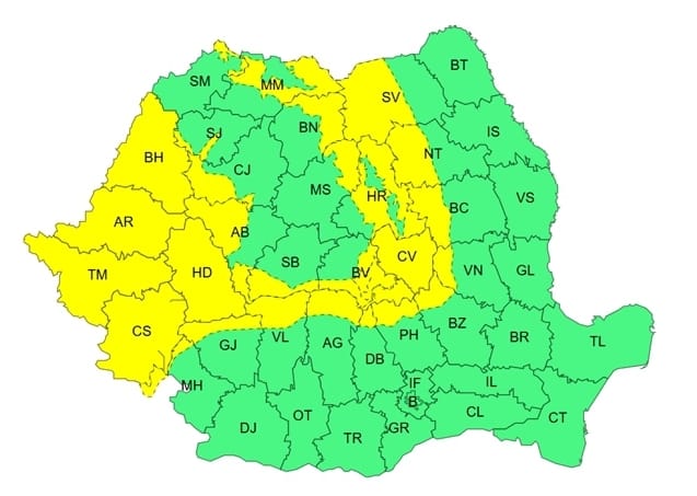 ATENȚIONARE METEOROLOGICĂ 🟨 COD GALBEN