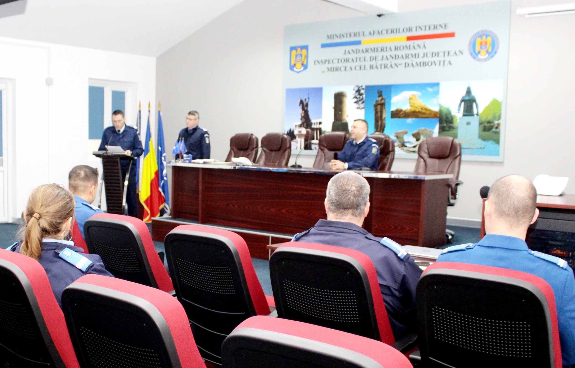 În contextul celebrării Zilei Naționale a României, 11 jandarmi dâmbovițeni, care s-au evidențiat prin modul de îndeplinire a atribuţiilor de serviciu, au fost înaintați astăzi, 29 noiembrie a.c., în gradul militar următor, înaintea expirării stagiului minim în grad, într-un cadru festiv la sediul Jandarmeriei Dâmbovița.