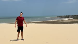 Jericoacoara e deșert! Neașteptat și ceva unic în Brazilia! Un sat cu străzi de nisip, înconjurat de dune de nisip aurii ca soarele. Și nu sunt departe – sunt literalmente lângă stațiune – în douăzeci de minute am fost în vârful lor. E prima dată când urc pe o dună de nisip, și nici măcar nu este deșert propriu-zis. De multe ori am simțit suprasolicitare senzorială – atâtea culori vii, clar definite, parcă ar fi fost desenate, și toate pe malul oceanului Atlantic, de un albastru pur. Eu încerc să vă arăt prin câteva poze cum a fost, dar pozele nu surpind nici o fracțiune din luminozitatea culorilor. Jericoacoara trebuie experimentat pe viu!