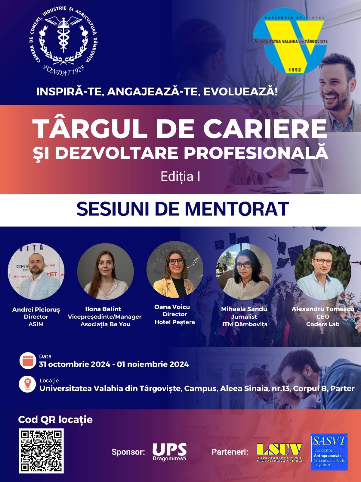 Din dorința de a veni aproape de tineri și de a-i ajuta cu informații utile pentru accederea pe piața muncii, Camera de Comerț Dâmbovița organizează o nouă acțiune ce-i are ca grup țintă. Astfel, săptămâna viitoare, în zilele de 31 octombrie și 1 noiembrie, va avea loc la Universitatea Valahia din Târgoviște un „Târg de Cariere și Devoltare Profesională”, care va consta în sesiuni de mentorat oferite de profesioniști din diverse domenii din județul Dâmbovița….