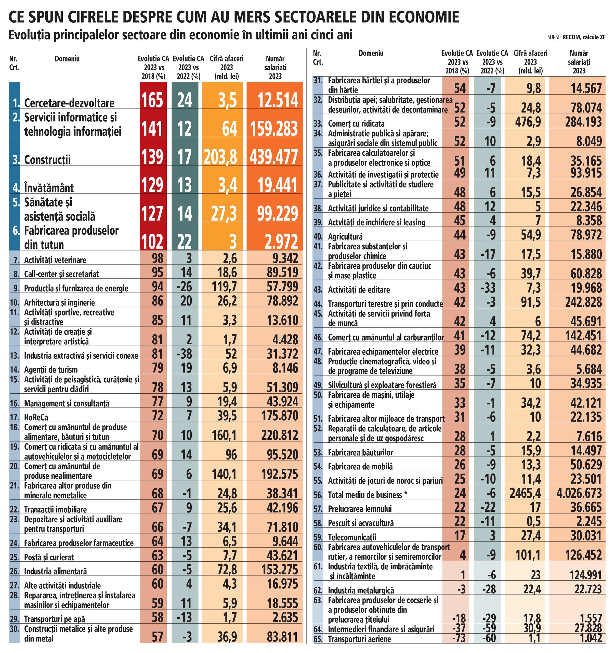 Campionii creşterilor din economie în ultimii cinci ani. Care sunt cele şase sectoare care şi-au dublat businessul şi cum s-a aşezat mediul privat cu creşteri uriaşe în sănătate şi învăţământ, două sectoare unde statul este neputincios. Urmează anuarul ZF Cele mai dinamice companii din România