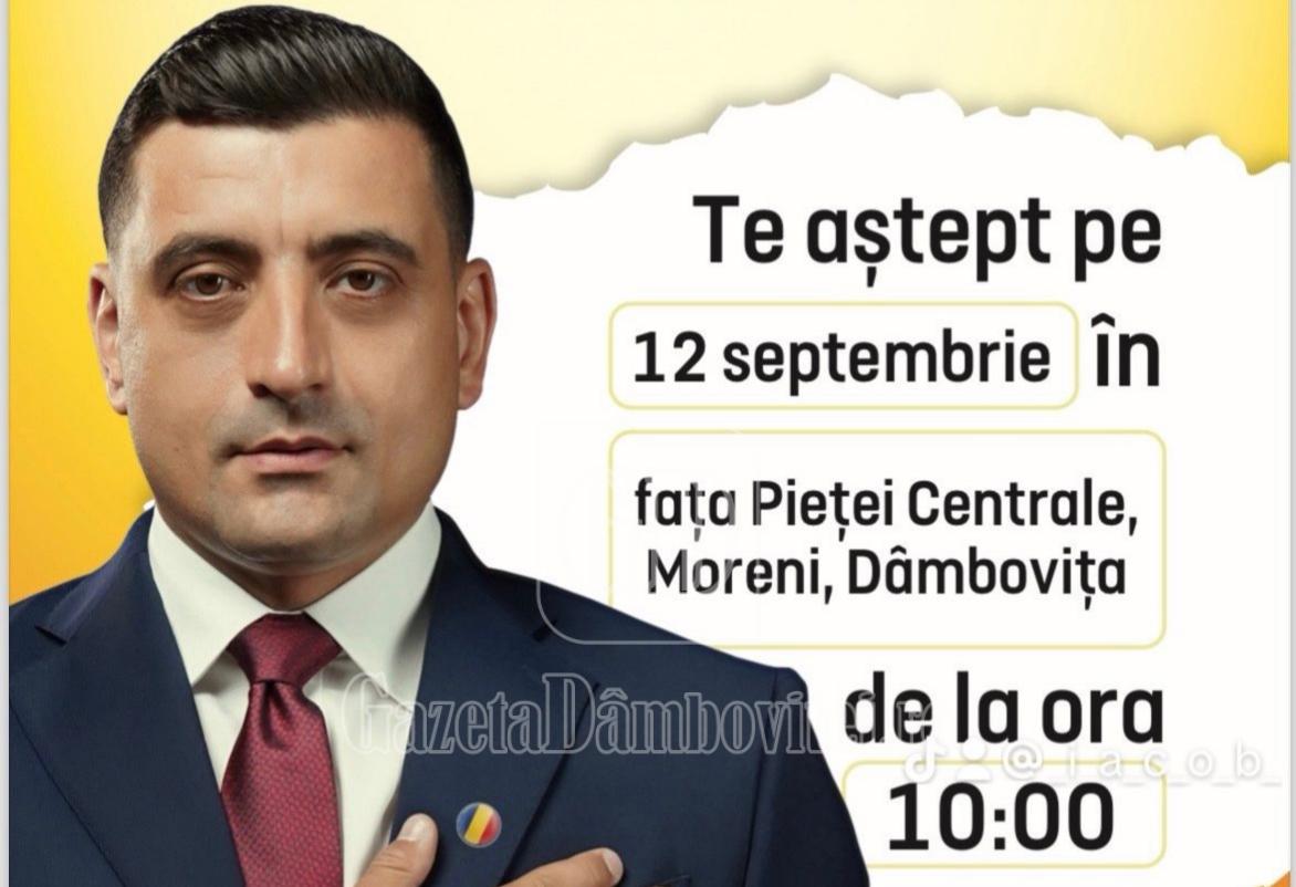 Președintele AUR, George Simion, candidat la alegerile prezidențiale, ajunge joi, 12 septembrie, în județul Dâmbovița. Liderul AUR va fi prezent, începând cu ora 10:00, în municipiul Moreni, în fața Pieței Centrale, pentru a discuta cu românii despre principalele probleme cu care aceștia se confruntă.