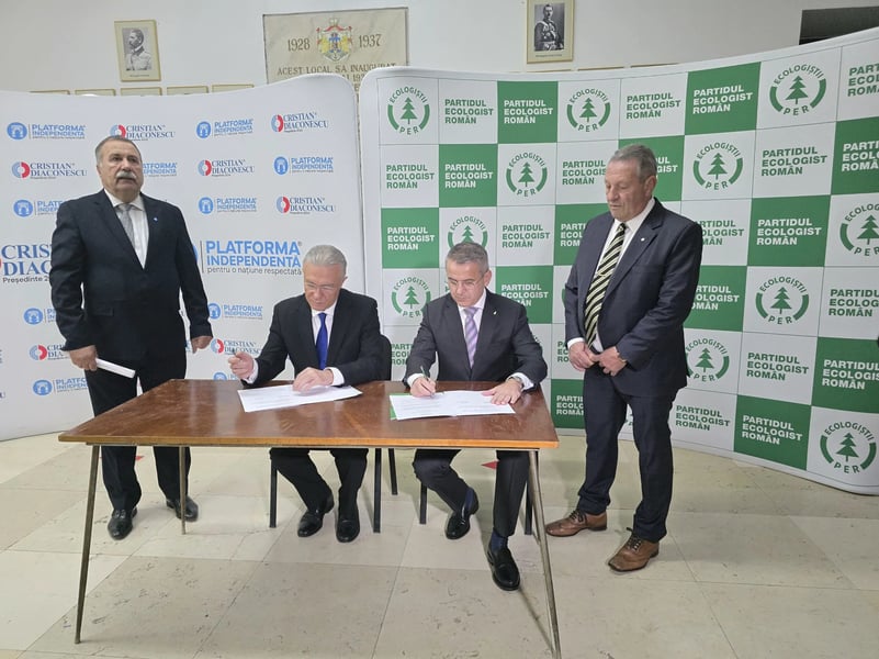 Candidatul independent la președinția României Cristian Diaconescu şi Partidul Ecologist Român (PER) au semnat, miercuri, un protocol de colaborare şi susţinere electorală reciprocă.
