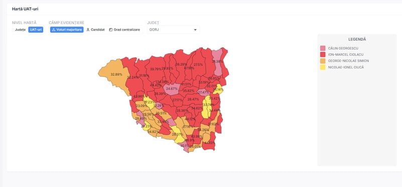 • 15 localități câștigate de George Simion