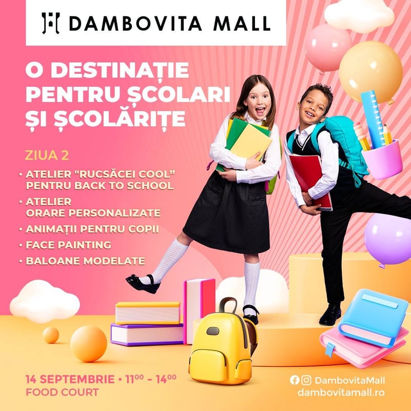 Distracția continuă și astăzi, pentru școlari, la Dâmbovița Mall. Cei mici sunt așteptați, între ora 11:00 și 14:00, în zona de Food Court, pentru o zi plină de creativitate și distracție!