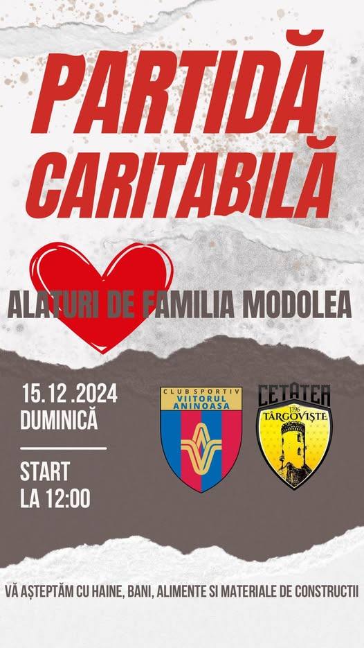 În meciul caritabil, Viitorul Aninoasa va înfrunta pe Cetatea Târgoviște, duminică,…