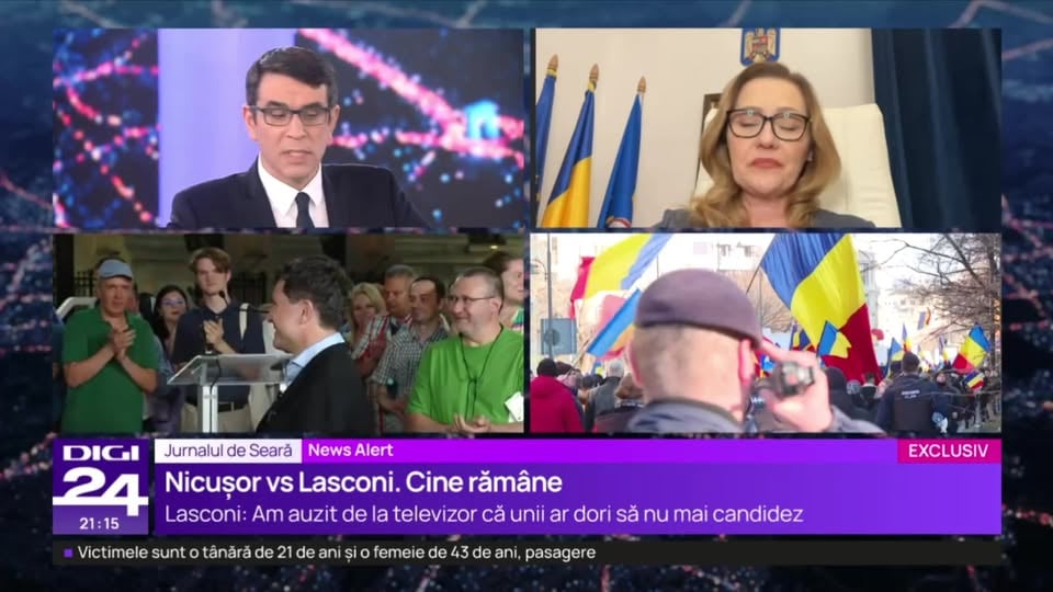 Elena Lasconi 2025-01-23 19:00:54: 0 By stirilenationale on January 23, 2025 Social Media Distribuie Facebook Twitter Email WhatsApp Sunt în direct la Digi24, la „Jurnalul de Seară” [fb_vid id=”2002798216895012″] Citește mai multe pe: https://www.facebook.com/100057026456960/posts/2002798216895012 Similar Articles TEST Bolojan îl contrazice pe Grindeanu privind disponibilizările de la CJ Bihor: Din 50 de angajați care au contestat au câștigat doi / Erau 194 de posturi în organigramă, din care 174 efectiv ocupate, au rămas 88 de angajați Related