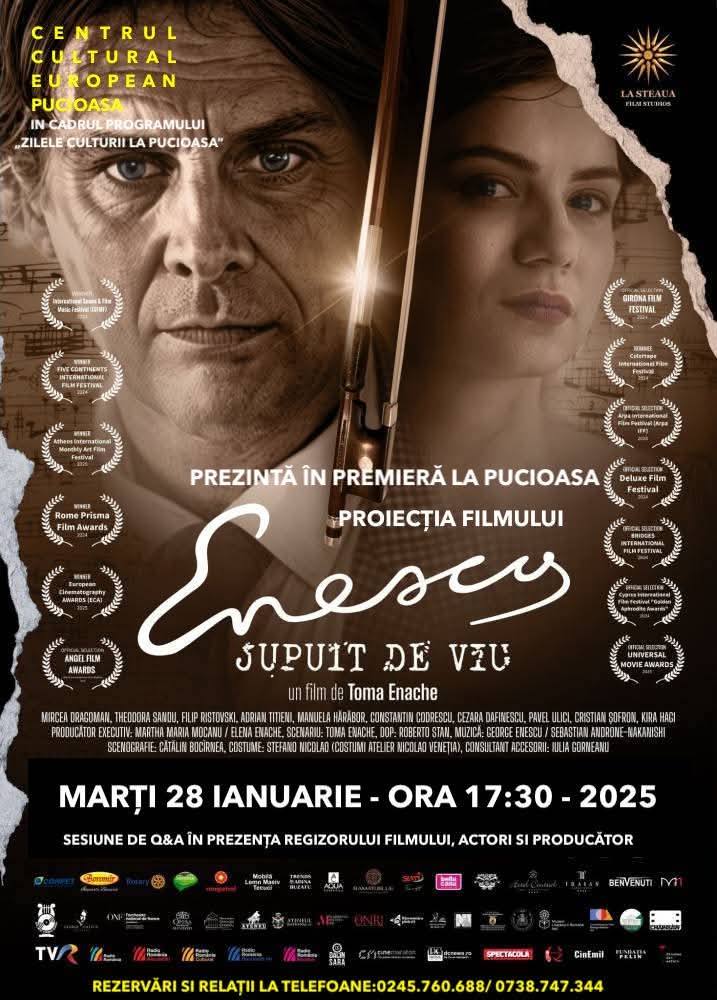 Premieră cinematografică, mâine, la Pucioasa. La Centrul Cultural European va rula, în cadrul evenimentului „Zilele Culturii, la Pucioasa”, de la ora 17.30, pelicula „Enescu – jupuit de viu”.