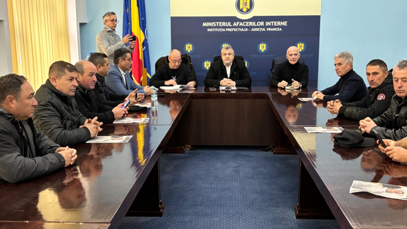 Astăzi, 30 decembrie 2024, la sediul Instituției Prefectului Județul Vrancea, a avut loc o întâlnire cu proprietarii terenurilor din Răcoasa, situate pe fondul de vânătoare nr. 27, privind incidentul tragic produs în data de 27 decembrie 2024, pe acest fond cinegetic nr. 27 – Mărăști.