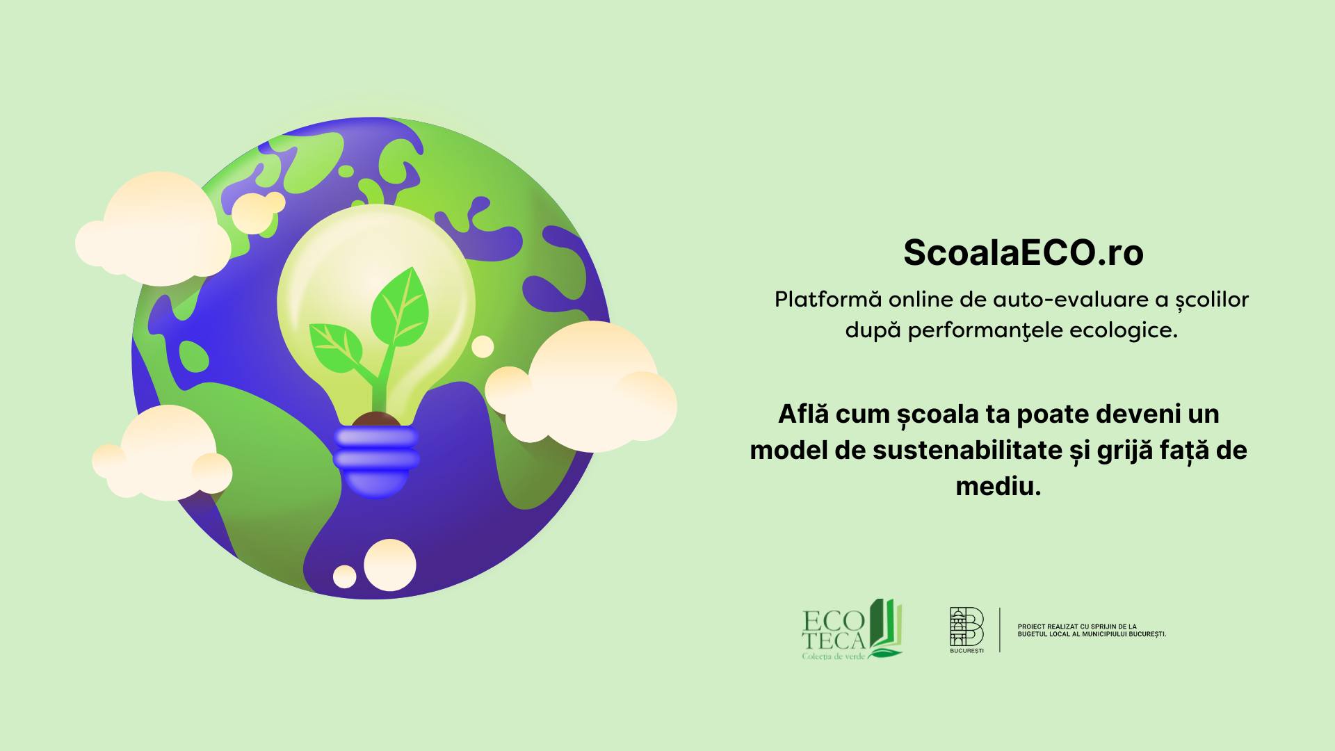Toate grădinițele, școlile și liceele din România își pot monitoriza, autoevalua și compara performanțele de mediu pe baza a șapte categorii de indicatori, accesând platforma online ScoalaECO.ro. Aceasta a fost lansată joi, 28 noiembrie, în cadrul conferinței „Pregătim Școli Verzi”, de către Asociația ECOTECA, în parteneriat cu Primăria Municipiului București.