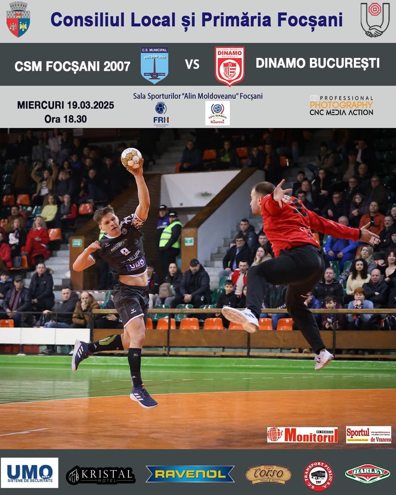 MIERCURI, 19 martie, de la ora 18:30, în Sala Sporturilor ,,Alin Moldoveanu” din Focșani!