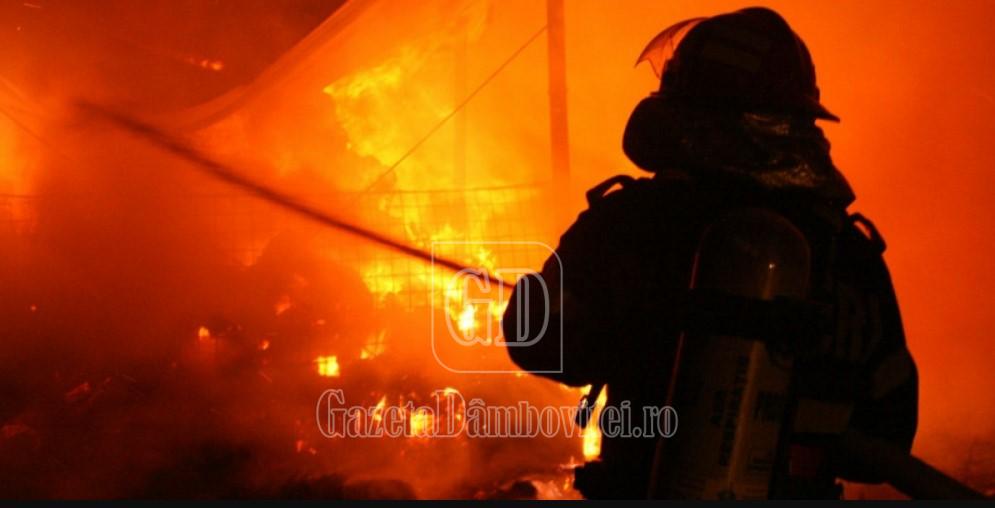 Incendiu la un magazin din Văleni-Dâmbovița. Pompierii sunt încă la fața locului