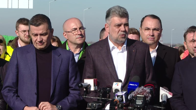 Declarații de presă susținute de premierul Marcel Ciolacu împreună cu ministrul Transporturilor și Infrastructurii, Sorin Grindeanu, la obiectivul de investiții rutiere Autostrada A7, lotul 4, de pe secțiunea Buzău – Focșani