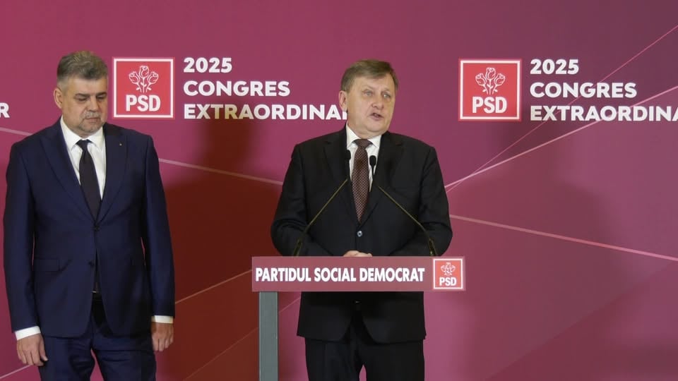 Declarații de presă susținute de președintele PSD, Marcel Ciolacu, și candidatul PSD la alegerile prezidențiale, Crin Antonescu, la Parlament