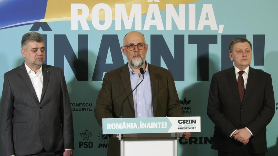 Conferință de presă susținută de Crin Antonescu, candidatul Alianţei Electorale „România Înainte” la alegerile prezidențiale din 2025, premierul Marcel Ciolacu, președintele PSD, Cătălin Predoiu, preşedintele interimar al PNL, Kelemen Hunor, președintele Uniunii Democrate Maghiare din România, și Varujan Pambuccian, liderul grupului parlamentar al minorităţilor naţionale, la sediul Alianţei Electorale „România Înainte”