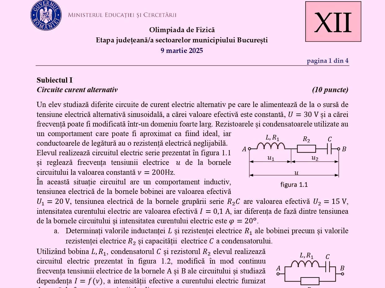 Subiectele și baremele de corectare la Olimpiada Națională de Fizică (ONF) 2025, etapa județeană, de duminică, 9 martie, au fost publicate de centrul de examen din județul Brașov, de la Colegiul de Științe ale Naturii „Emil Racoviță” din municipiul Brașov. Documentele pot fi descărcate mai jos din articol.