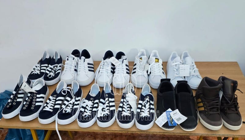 În urma verificărilor efectuate asupra femeii, în vârstă de 33, au fost găsite mai multe perechi de încălțăminte sport cu numele unei mărci de renume.
