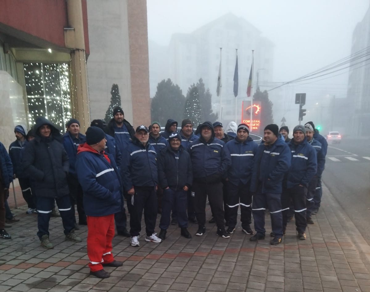 Câteva zeci de salariați din cadrul Complexului Energetic Oltenia protestează la această oră în fața sediului companiei, la Târgu Jiu.