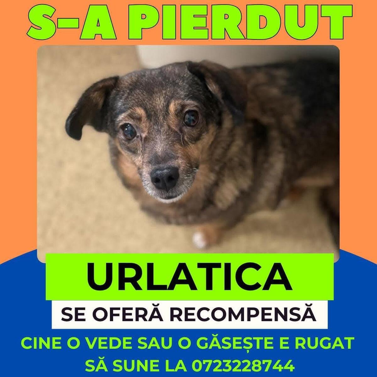 E mobilizare pe rețelele de socializare după ce s-a pierdut Urlățica, o cățelușă care era îngrijită de medicul veterinar Patricia Paraschiv. Ea a lansat un nou apel pe Facebook și anunță că oferă recompensă cui o ajută să o găsească.