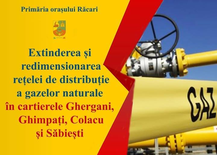 Administrația locală din Răcari are un nou proiect în derulare. Este vorba despre extinderea și redimensionarea rețelei de distribuție a gazelor în mai multe cartiere ale orașului dâmbovițean. Primarul localității, Marius Caravețeanu informează că, în urma cererii de racordare nr. 210693268, s-a emis Avizul Tehnic de Racordare pentru alimentarea cu gaze naturale la Ghergani, Ghimpați, Colacu sși Săbiești.