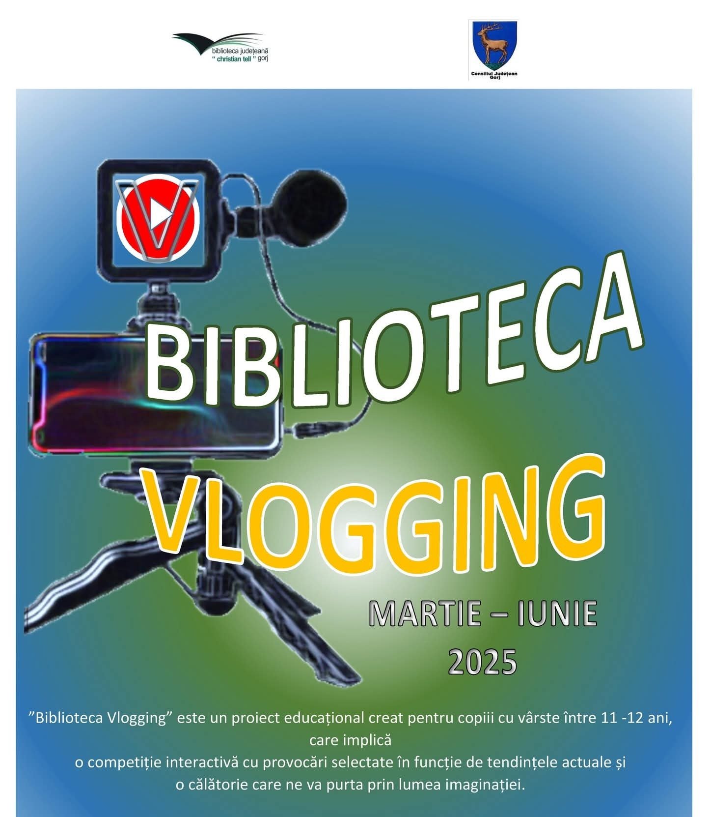 Biblioteca Județeană „Christian Tell” Gorj anunță cu entuziasm lansarea concursului educațional „Biblioteca Vlogging”, desfășurat în perioada martie – iunie 2025. Acest concurs face parte din proiectul educațional cu același nume, inițiat de Biblioteca Județeană „Christian Tell” Gorj.