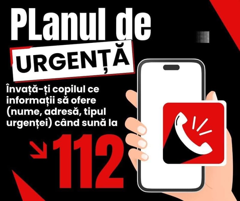 Învață-ți copilul să sune la 112 și să ofere informațiile corecte: numele, adresa și tipul urgenței. Exersați împreună ca să știe ce are de făcut atunci când este nevoie!