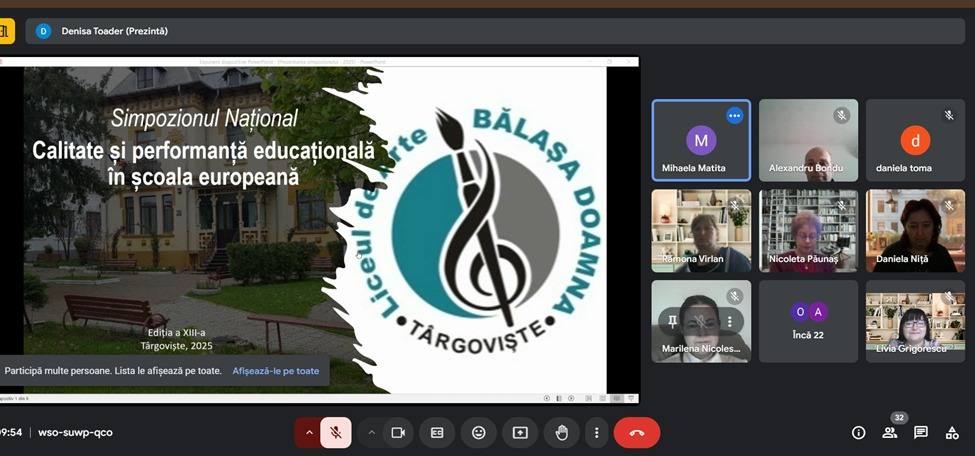 Casa Corpului Didactic Dâmbovița a fost partener al Liceului de Arte ,,Bălașa Doamna” din Târgoviște, la organizarea Simpozionului Național ,,Calitate și performanță educațională în școala europeană”, desfășurat, la finalul săptămânii trecute, în format on-line.