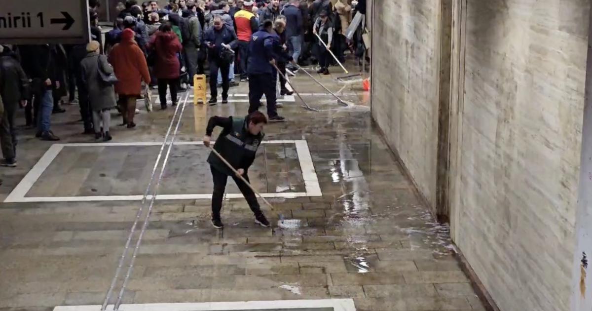 la stația de metrou de la Piața Unirii, după ce o țeavă de apă s-a spart iar