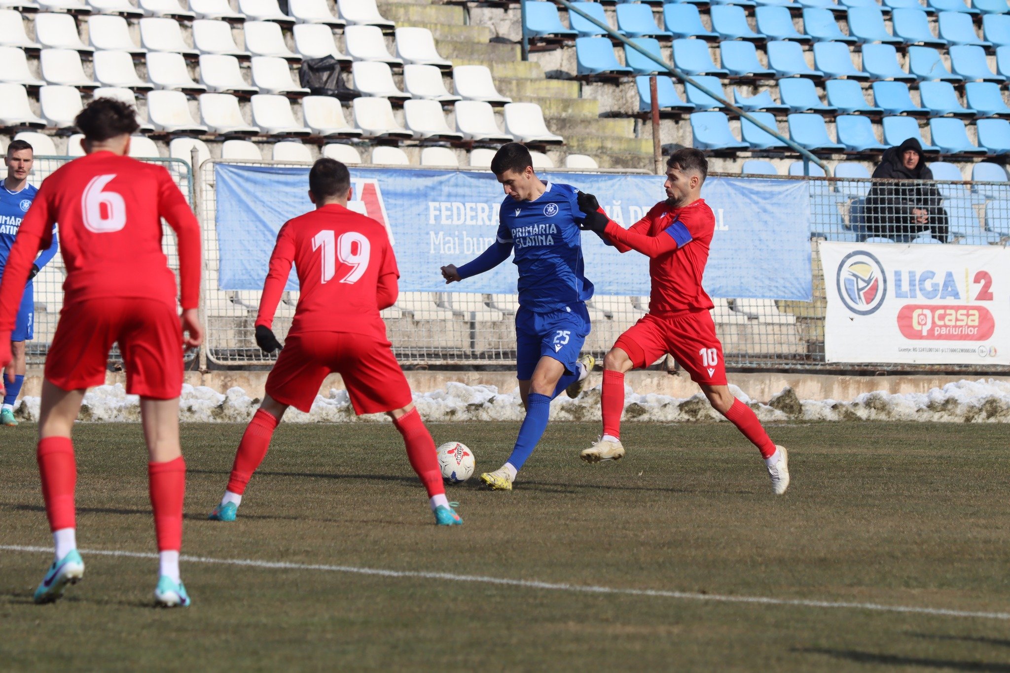 * Indiferent cât de ambițioși ar fi fost jucătorii, pe un gazon înghețat bocnă, așa cum a fost cel al Stadionului „1 Mai” din Slatina, nu s-ar fi putut realiza mare lucru