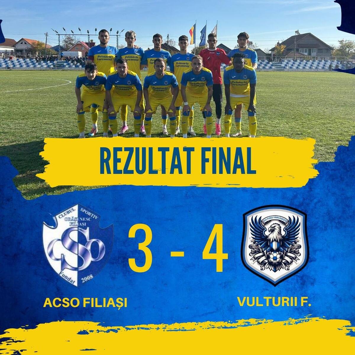 Vulturii Fărcășești a reușit să obțină o victorie spectaculoasă în meciul din prima etapă a turului. Formația gorjeană, nou promovată în acest sezon a surclasat una dintre echipele de top din eșalonul secund, ACSO Filiași, cea care anii trecuți se lupta la promovarea în Liga 2.