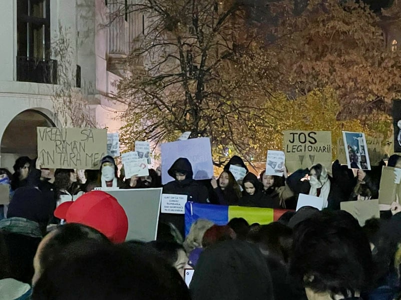 Circa 1.000 de studenți și tineri s-au adunat la manifestația din Piața Universității marți seara. Este pentru a doua seară când tinerii merg în centrul Bucureștiului pentru a-și arăta îngrijorarea față de faptul că la turul I al alegerilor prezidențiale aproape 23% dintre participanții la scrutin au votat un candidat pro-rus, cu mesaje legionare și anti-UE și anti-NATO.